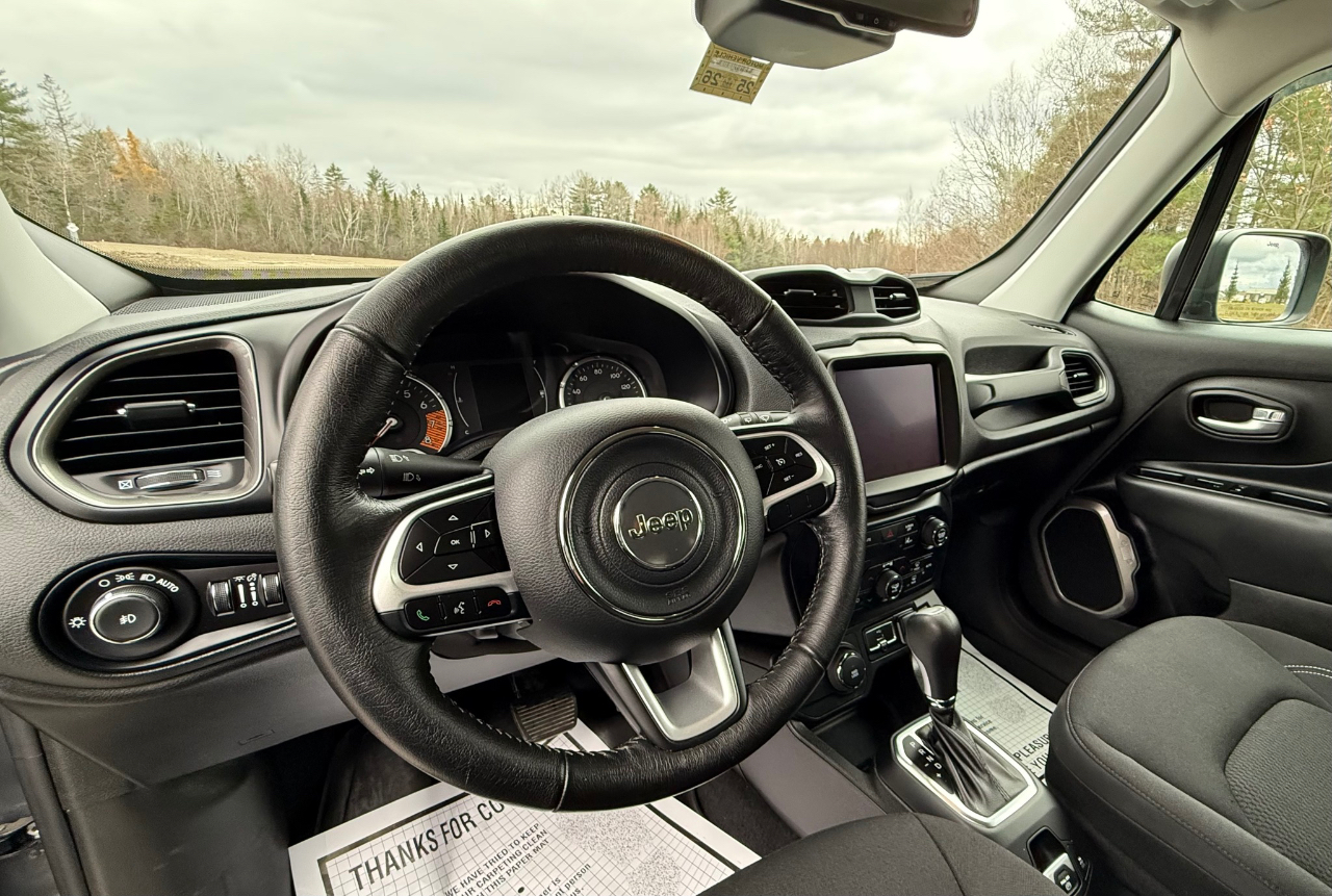 Only 15,497 ONE OWN OWNER MILES!! 2023 Jeep Renegade Latitude 4x4. 1.3L Turbo,4-Cyl, with a 9-Speed Automatic Transmission. Heated 8-Way Power W/Power Lumbar Support, Heated Cloth PS Seat, Heated Steering Wheel, Uconnect 4C GPS Navigation with an 8.4” Touchscreen Display, Back -Up Camera, HD Radio with Integrated Voice Command, Apple Car Play, Dual Zone Auto Temperature Control W/AC, Power Windows, Power locks, Tilt Steering Wheel With Controls, Heated Exterior Mirrors, Windshield Wiper De-Icer, Auto Dimming Rear View Mirror, Lane Departure Warning, Forward Collision Warning Plus, Blind Spot & Cross Path Detection, Parkview Rear Back-Up Camera, Select Terrain System, Electronic Stability Control, Rain Guards, OEM Floor Mats, Keyless Entry, REMAINDER OF FACTORY WARRANTY (Ask dealer for details), CLEAN CAR FAX and more. Economy Priced at only $21,488.00. On the spot financing to qualified buyers and Trades are always welcome. Give us a call at 207-848-7378 before it’s gone!!